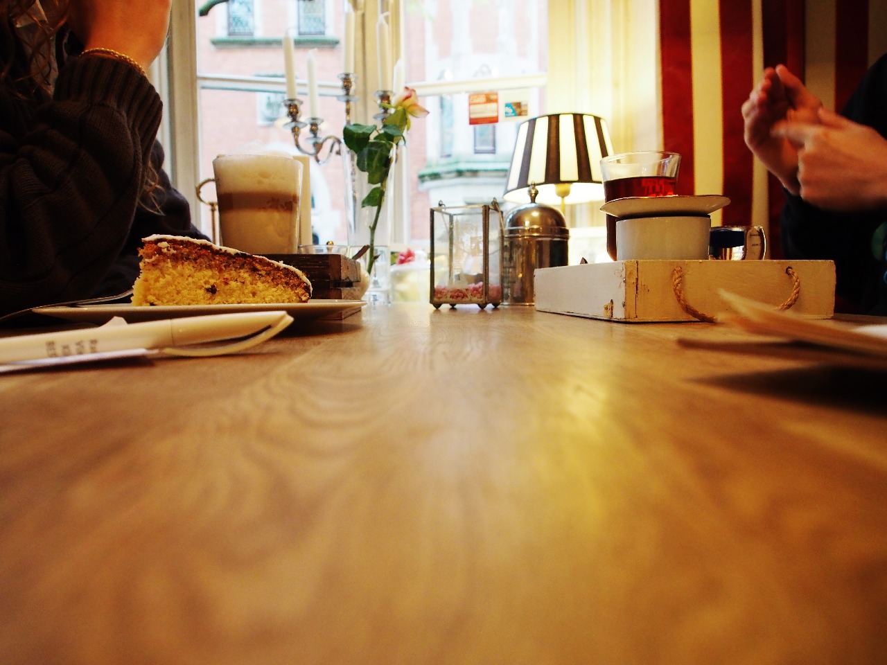 We settled in a cozy Café to have something warm to drink and something sweet to eat. We started chatting about the weekend, and some shallow storys till the hourglass was running out for the tea to be ready to drink.....